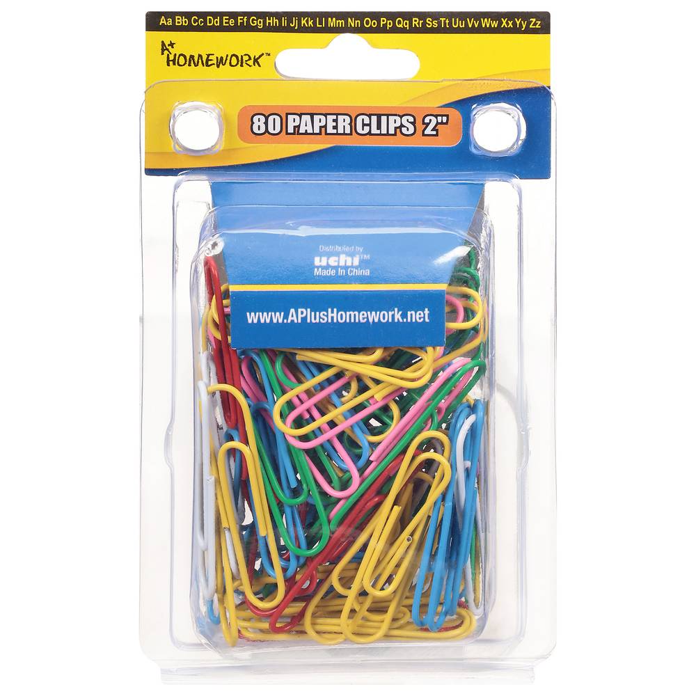 A+ Homework Paper Clips, 2 Inch, Assorted (80 ct)