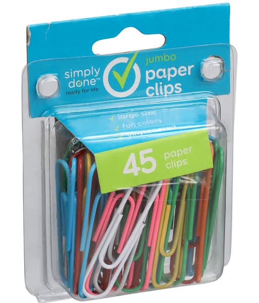 Simply Done Jumbo Paper Clips, Multicolor (45 ct)