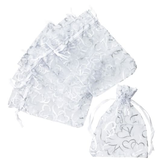 Celebrate It Double Heart Organza Favor Bags, 3" x 4", Silver (12 ct)