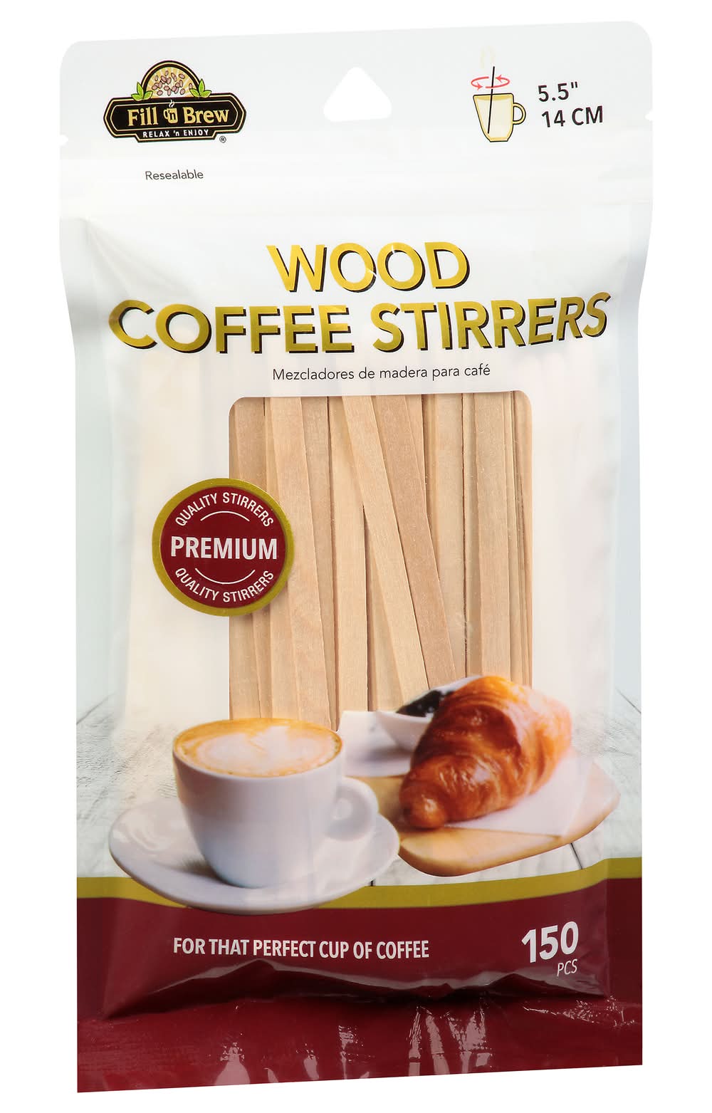Fill 'n Brew Wood Coffee Stirrers, 5.5 In (3.2 oz, 150 ct)