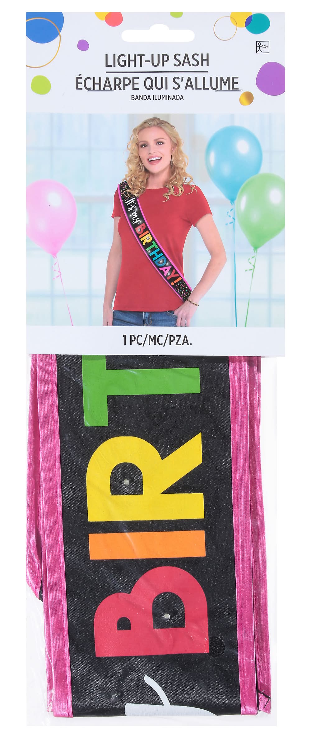 Party City Light-Up Confetti It's My Birthday Fabric Sash, Assorted