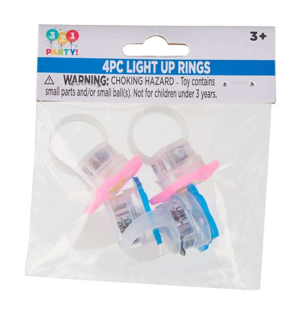 321 Party! Butterfly & Flower Light Up Rings Party Favors 3+ Years (4 ct)