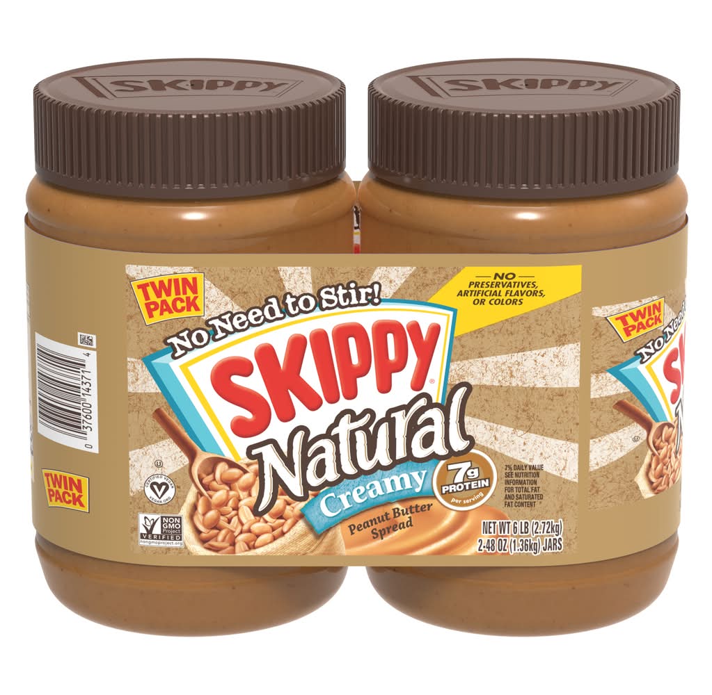 Skippy Natural Creamy Peanut Butter Spread Twin pack (6 lbs, 2 ct)