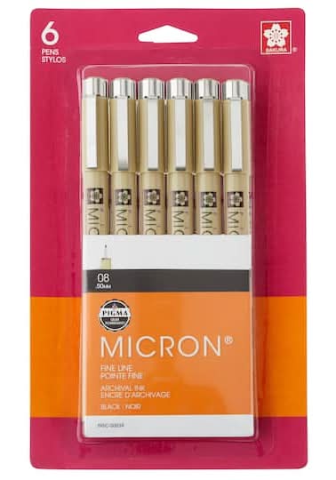 Sakura Pigma Micron 08 Fine Line Black Pens, Black (6 ct)