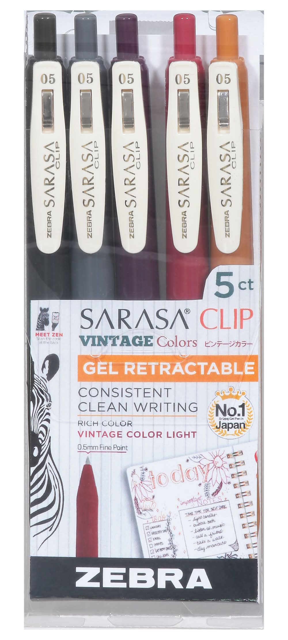 Zebra Sarasa Clip Fine Point (0.5 mm) Retractable Gel Pen (5 ct)