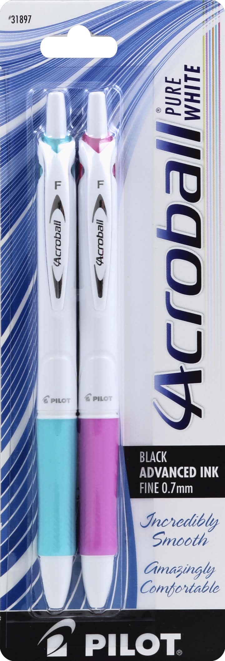 Pilot Acroball Pure Black Advanced Ink White Pens (0.5 oz)
