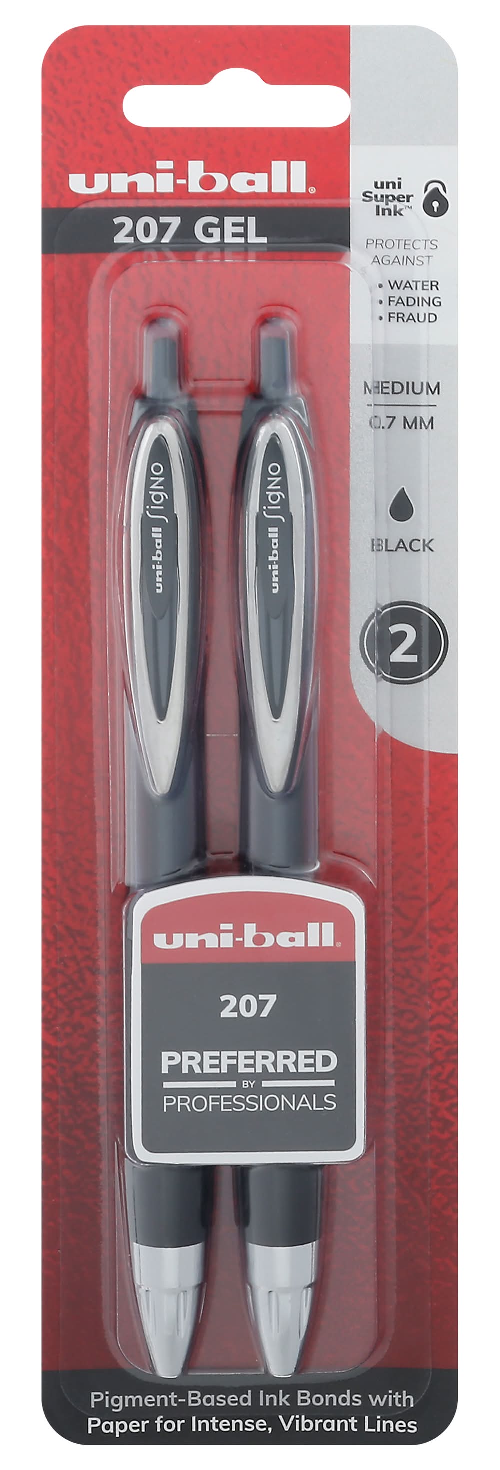 Uni-Ball Signo Medium 207 Gel Pens,, Black (1.6 oz, 2 ct)