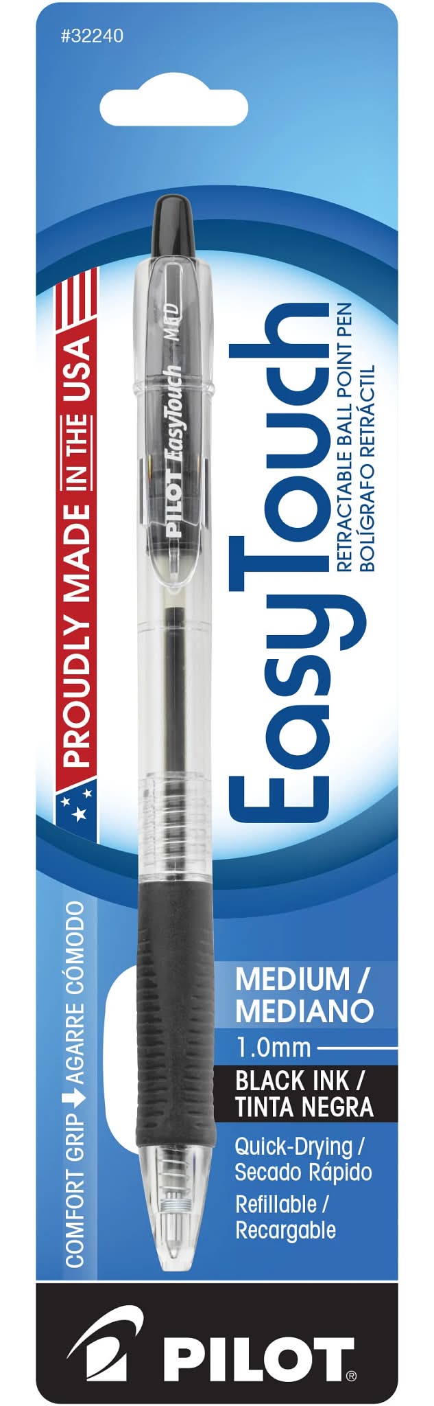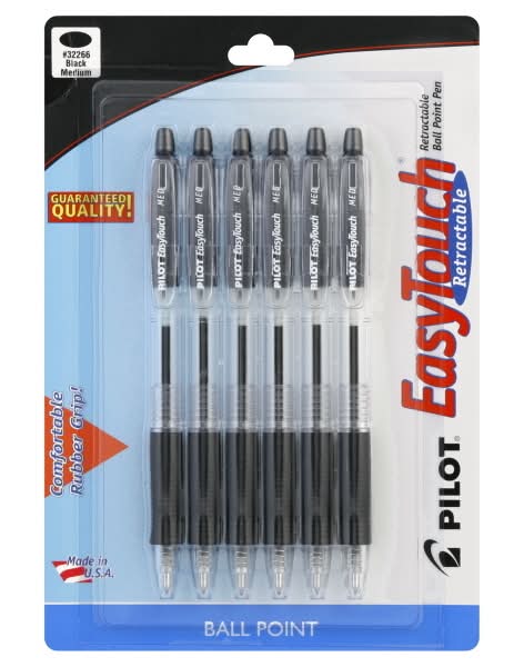 Pilot Easy Touch Ball Point Pens, Medium, Black (6 ct)