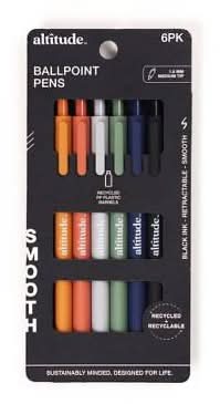 Altitude Ballpoint Retractable Matte Finish Black Ink Pens, Assorted (6 ct)