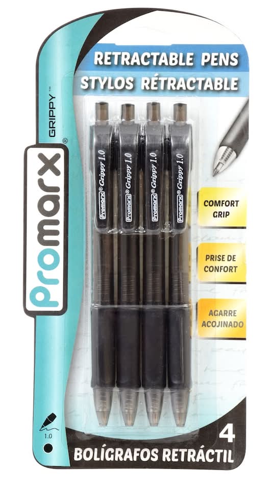 Promarx Grippy Medium Retractable Ballpoint Pens, 1.0, Black (4 ct)