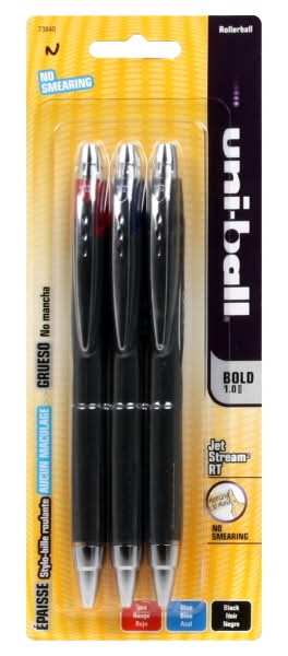 Uni-Ball Rollerball Pens, Red, Blue, Black (3 ct)