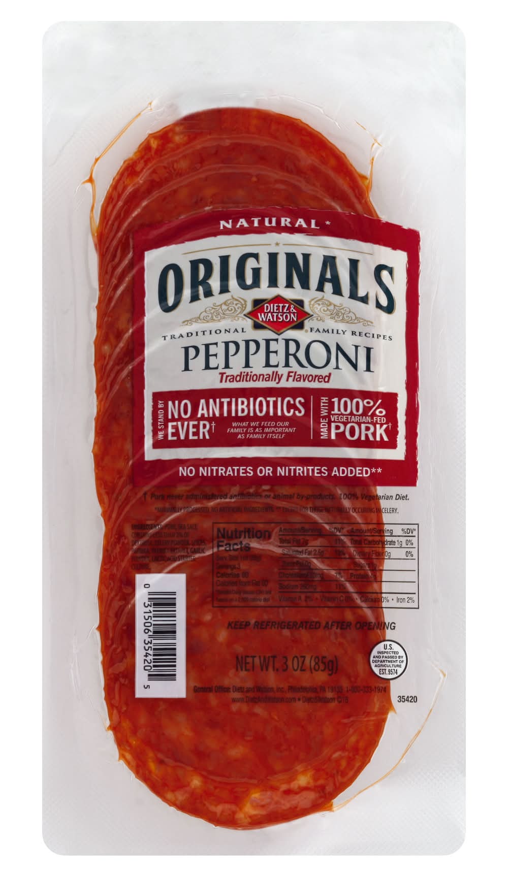 Dietz & Watson 100% Vegetarian-Fed Pork Pepperoni (3 oz)