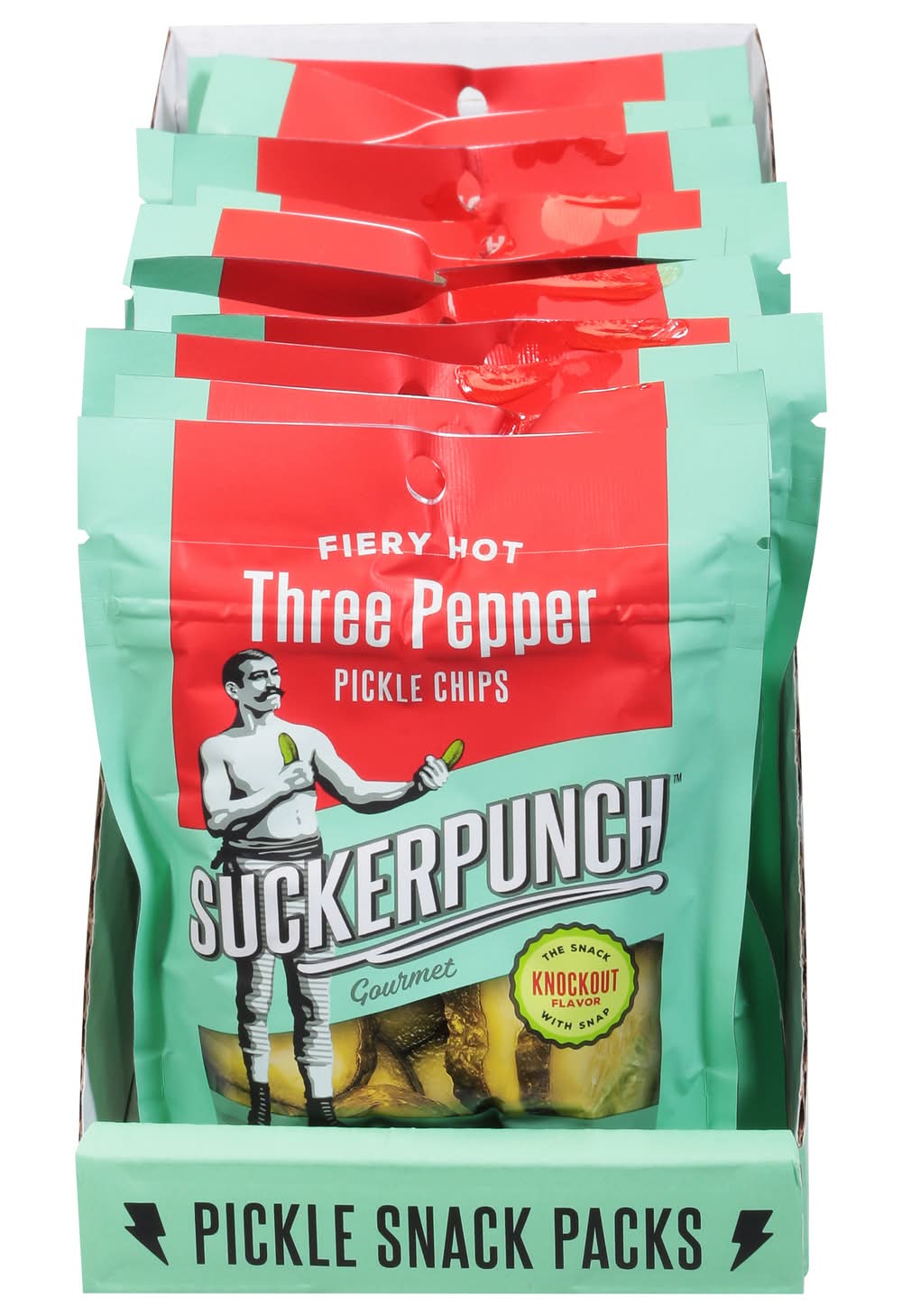 SuckerPunch Gourmet Fiery Hot Three Pepper Pickle Chips (3.4 fl oz, 12 ct)