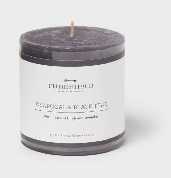 Threshold Pillar Candle, Charcoal-Black Teak, 3x3 in (10.8 oz)