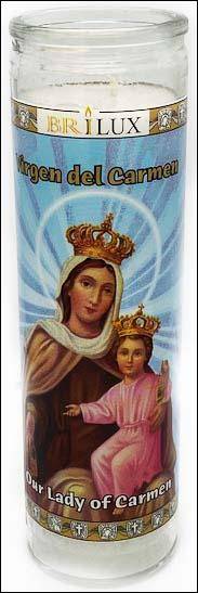 Veladoras Misticas Our Lady Of Carmen Unscented White Pillar Candle in Glass
