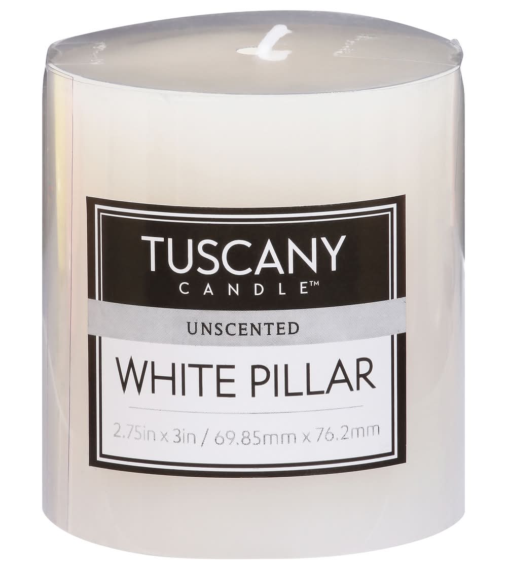 Tuscany Candle White Pillar Unscented Candle, 2.75"X3" (9.6 oz)