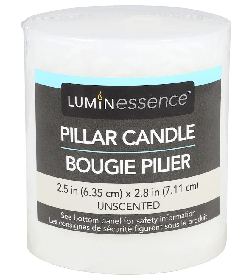 Luminessence Unscented Pillar Candles, 2.8x2.5 in, White