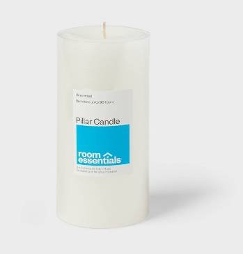 Room Essentials Unscented Pillar Candles, 3x6 in, White