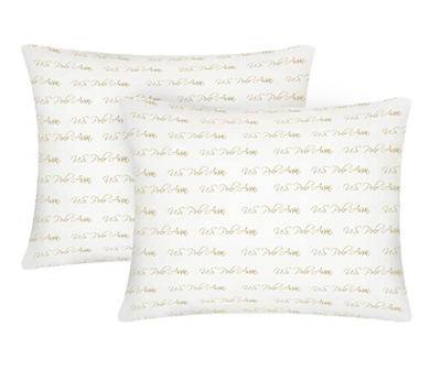 U.S. Polo Assn Script Logo Medium Density Pillow, 20.0"L x 26.0"W x 6.0"H, White (2 ct)