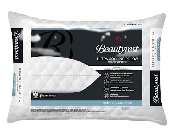 Beautyrest Ultra Cooling Bed Pillow, Queen, Charcoal