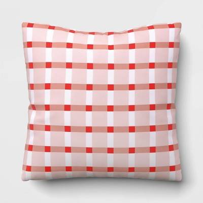 Room Essentials Plaid Reversible Square Outdoor Pillow, 17x17 in, Red