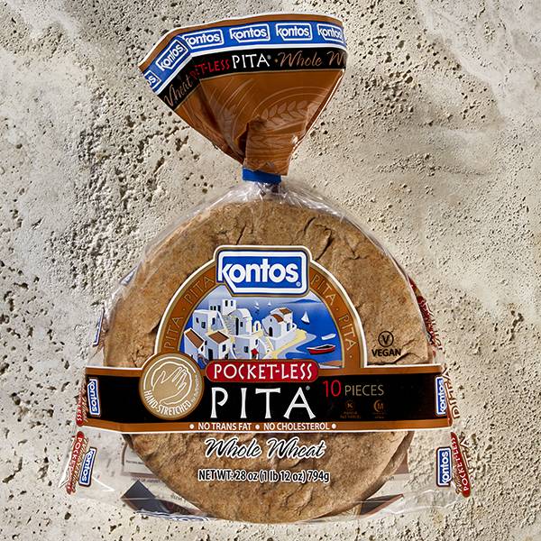 Kontos Pocket Less Pita Whole Wheat Bread (2.8 oz, 10 ct)