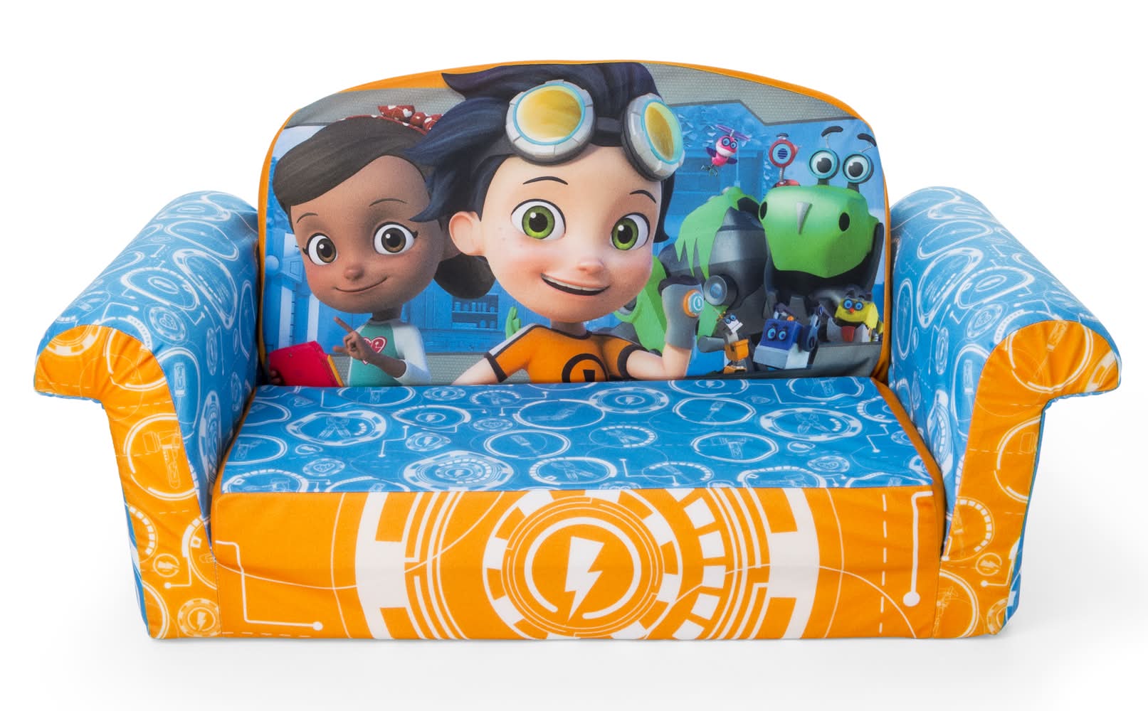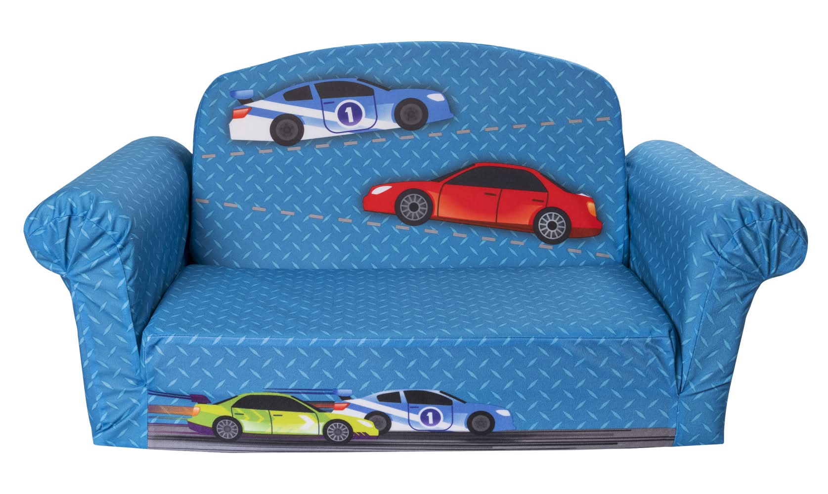 Marshmallow Furniture Children's 2 in 1 Race Car Flip Open Foam Sofa