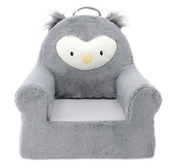 Soft Landing Sweet Seats Owl Plush Kids Chair, Grey