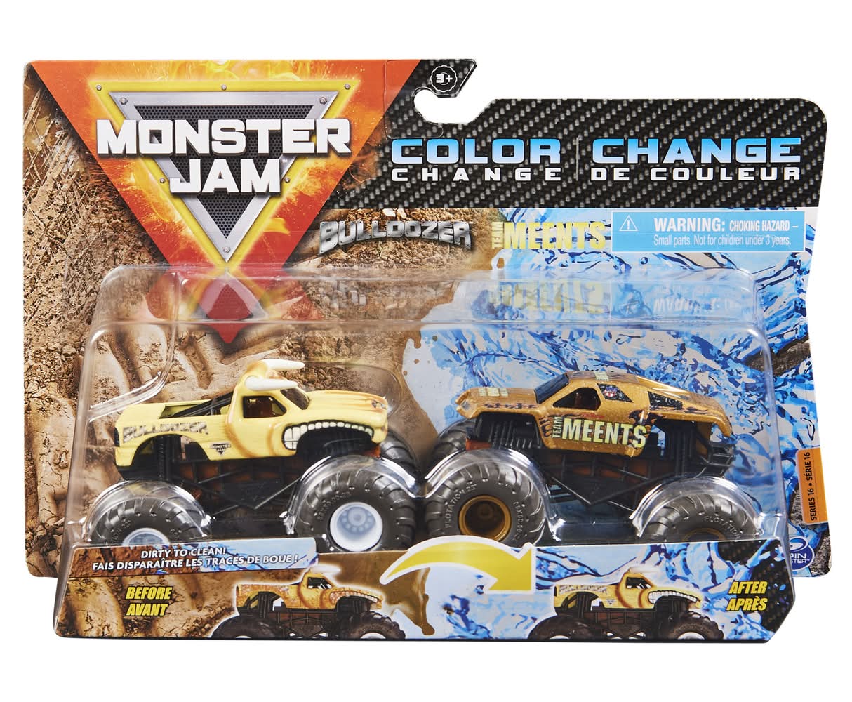 Monster Jam Official Grandma Grave Digger Vs. Team Meents Color-Changing Die-Cast Monster Trucks