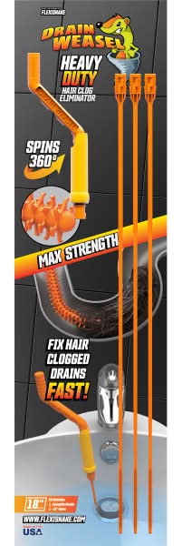 FlexiSnake Drain Weasel Sink Snake Hair Clog Remover Tool Kit (3 ct)