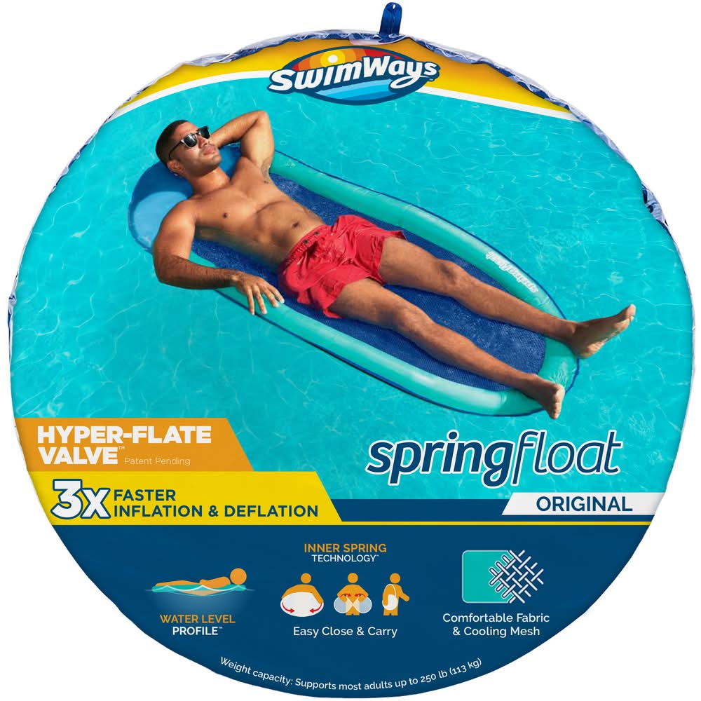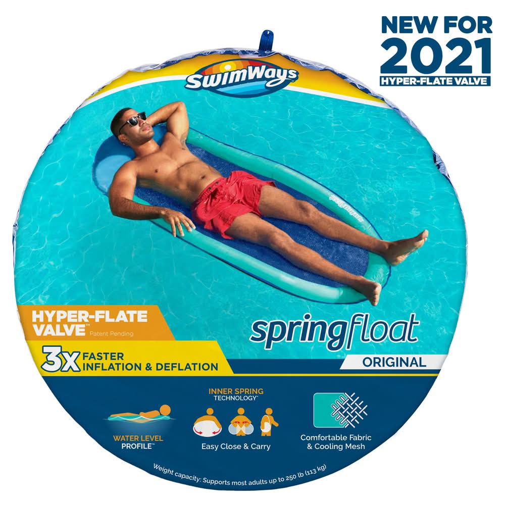 SwimWays Spring Float Inflatable Pool Lounger With Hyper-Flate Valve, Aqua