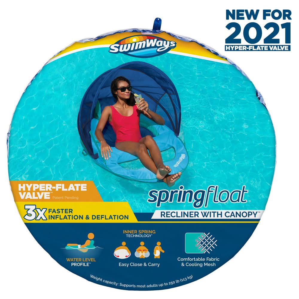SwimWays Spring Float Recliner Pool Lounger With Canopy