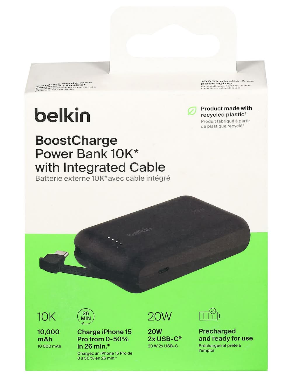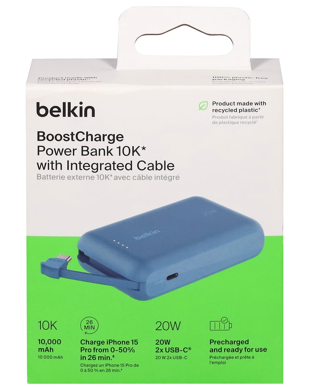 Belkin Boost Charge Power Bank 10k Mah With Integrated Cable
