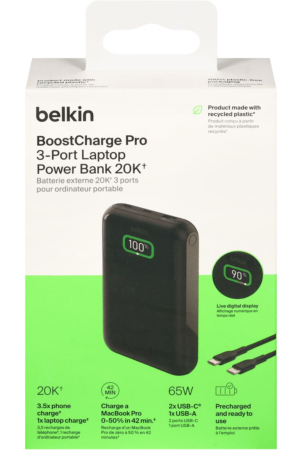 Belkin Boost Charge Pro 3-port Laptop Power Bank 20k, Black