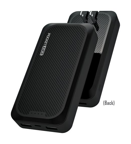 Tzumi Pocketjuice Endurance Portable Power Bank Charger With Built-In Wall Plug, Black