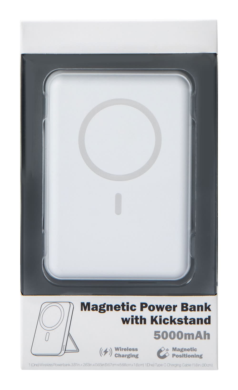 Ijoy Magnetic Power Bank With Kickstand 5000mah, 3.8x2.63x0.65 in, White