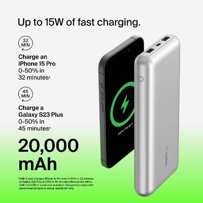 Belkin Power Bank 15w Usb-A + Usb-C 10000mah, Silver