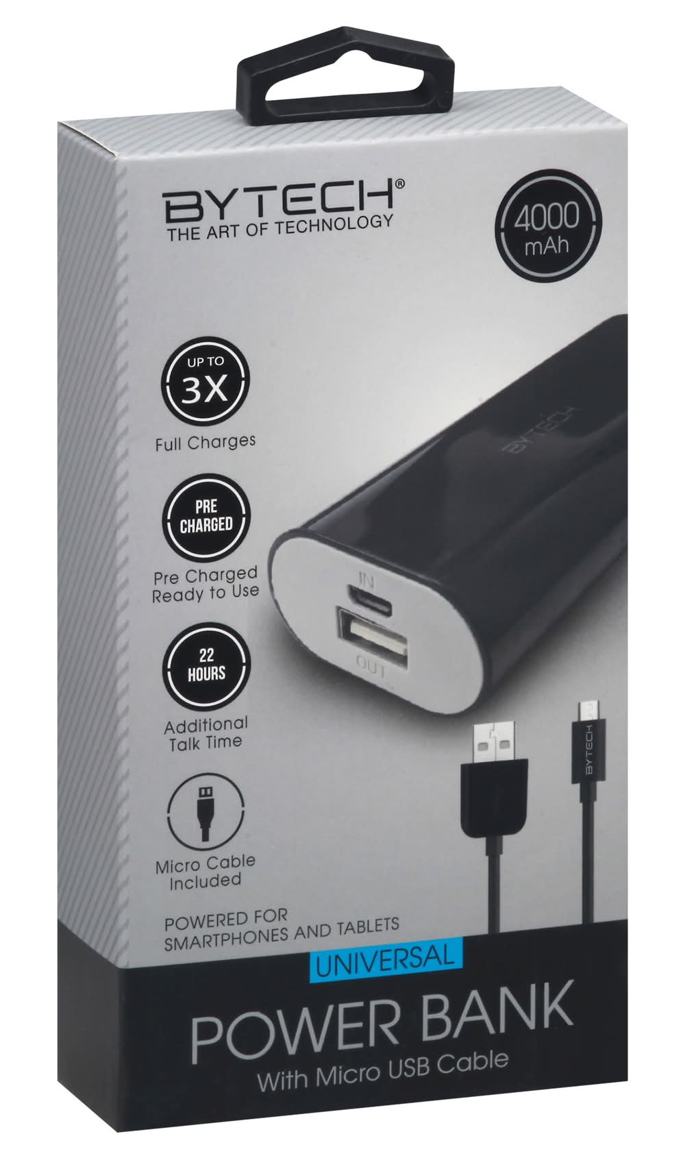 Dealworthy Power Bank With Micro Usb Cable 4000mah, Black (2 ct)