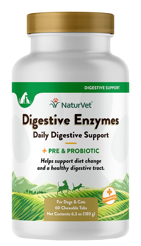NaturVet Digestive Enzymes Plus Probiotic Chewable Tablets For Cats & Dogs (6.3 oz, 60 ct)