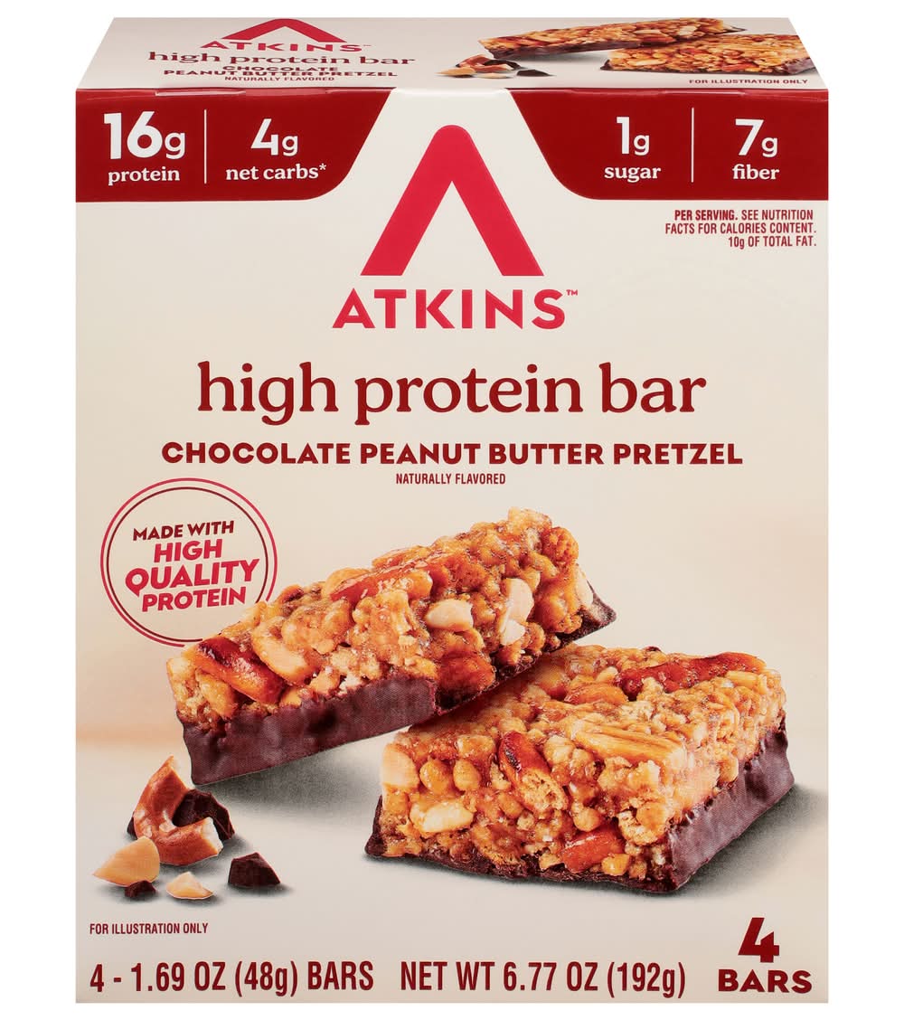 Atkins Pretzel High Protein Bar, Chocolate-Peanut Butter (4 x 1.69 oz)