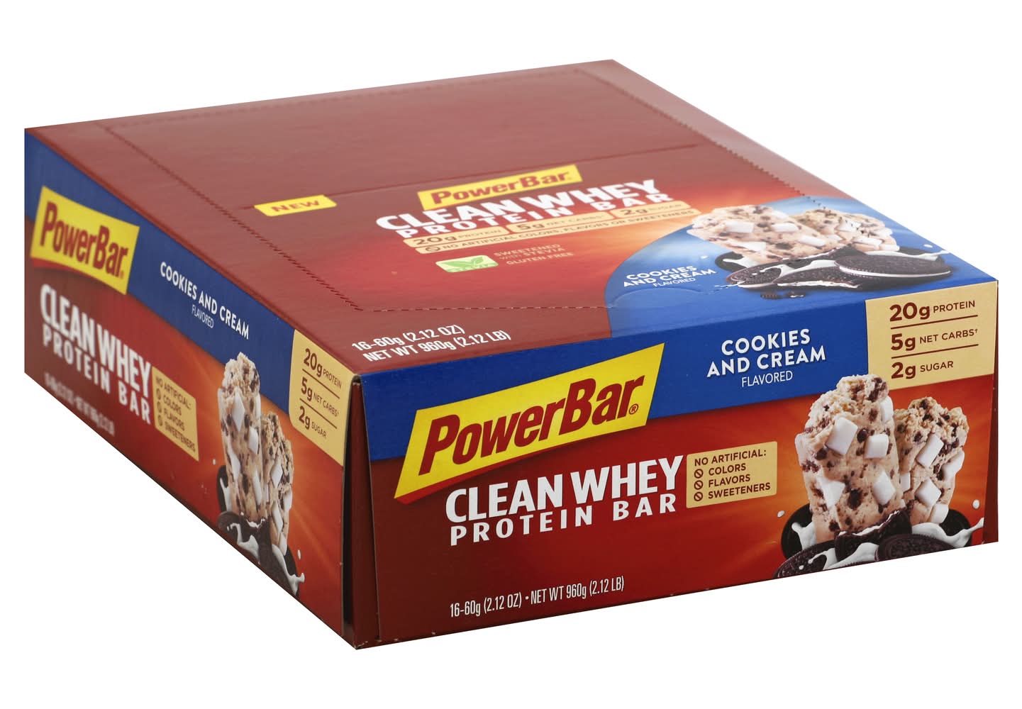 PowerBar Clean Whey Protein Bar, Cookies and Cream (16 x 2.12 oz)