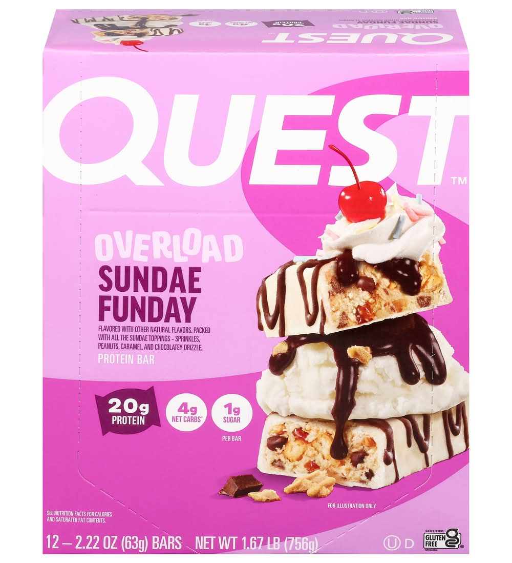 Quest Overload Protein Bar, Sundae Funday (12 x 2.22 oz)