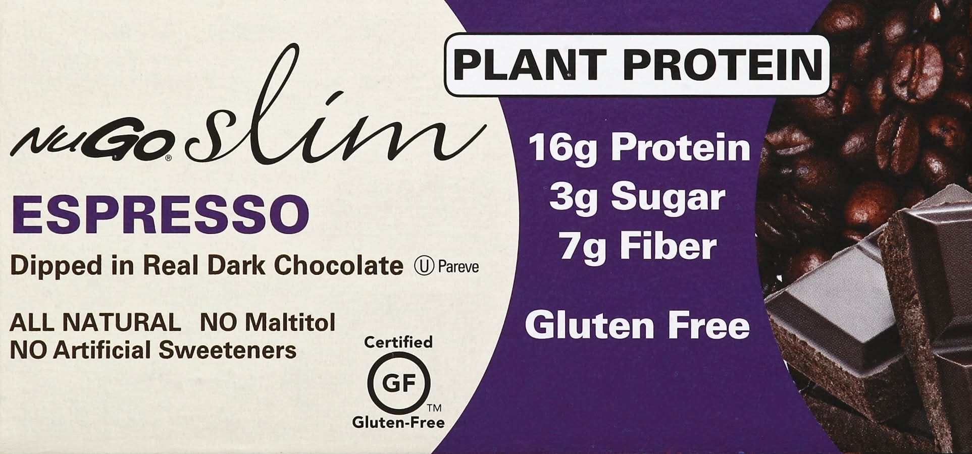 NuGo Slim Espresso Nutrition Bars, Dark Chocolate (1.59 oz, 12 ct)