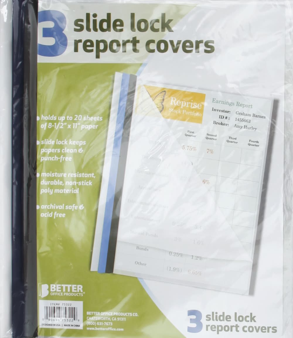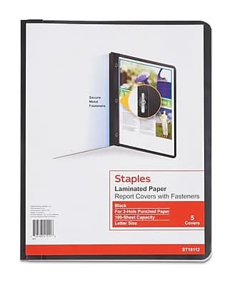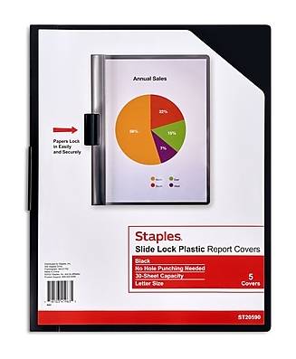 Staples Slide Locking Report Cover, Letter Size, Black (5 ct)