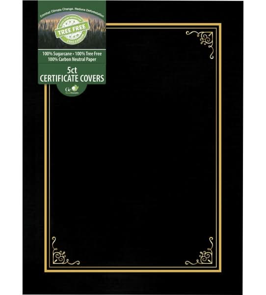 Geographics Certificate Cover, 8 1/2 x 11 in, Black-Gold (5 ct)