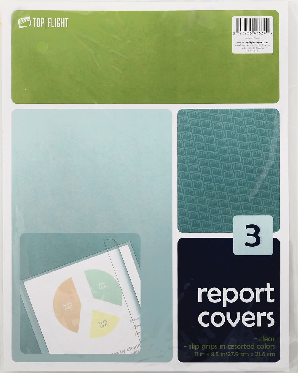 Top Flight Report Covers, 27.9 cm X 21.6 cm, Assorted Colors (3 ct)