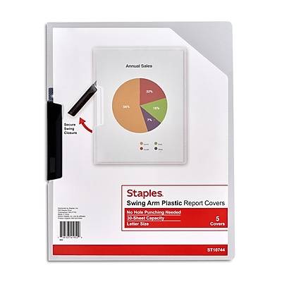 Staples Swing Lock Report Covers, 8.5" X 11", Clear-Smoke (5 ct)