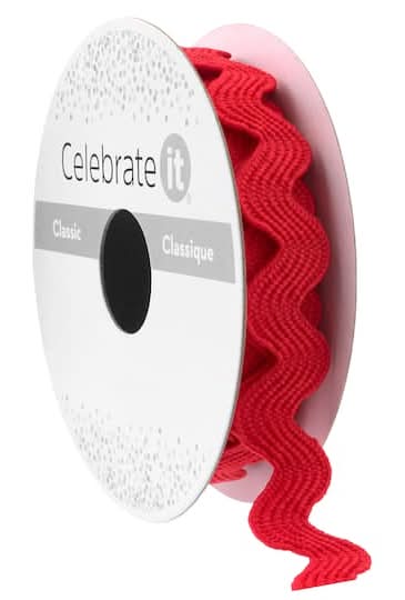 Celebrate It Classic Ric Rac Trim Ribbon, 5/8" x 4yd, Red