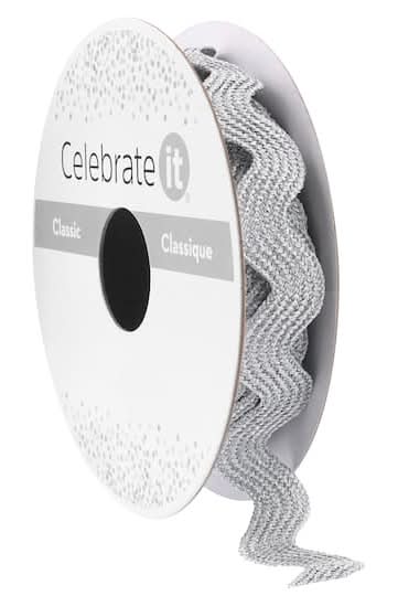 Celebrate It Metallic Ric Rac Trim Ribbon, 5/8in x 4yd, Silver