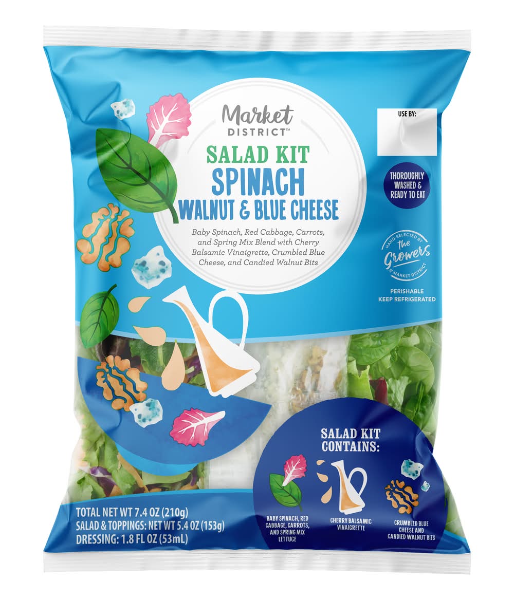Market District Salad Kit, Spinach Walnut and Blue Cheese (7.4 oz)